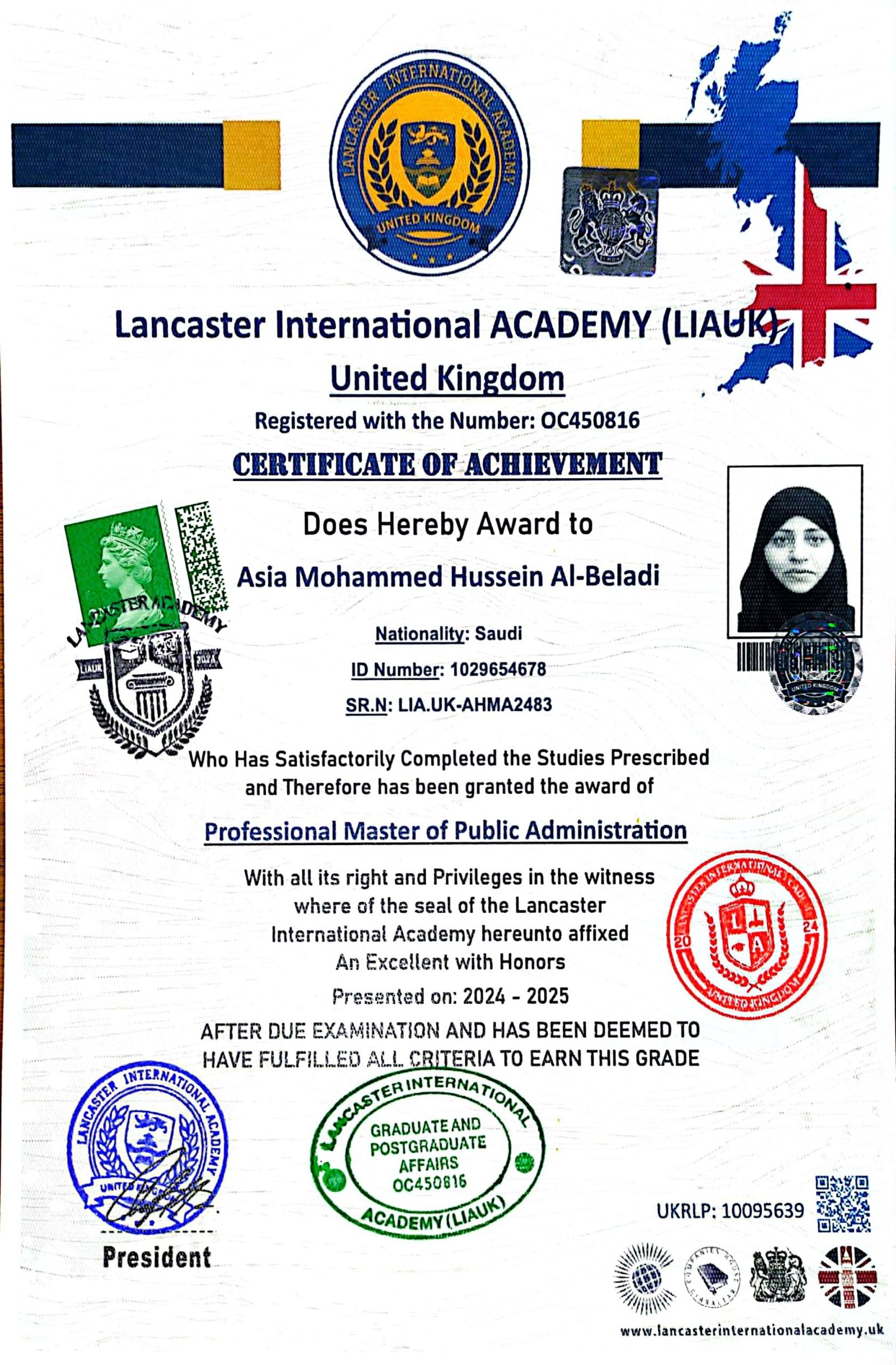 Asia Mohammed Hussein Al-Beladi – LIA.UK-AHMA2483