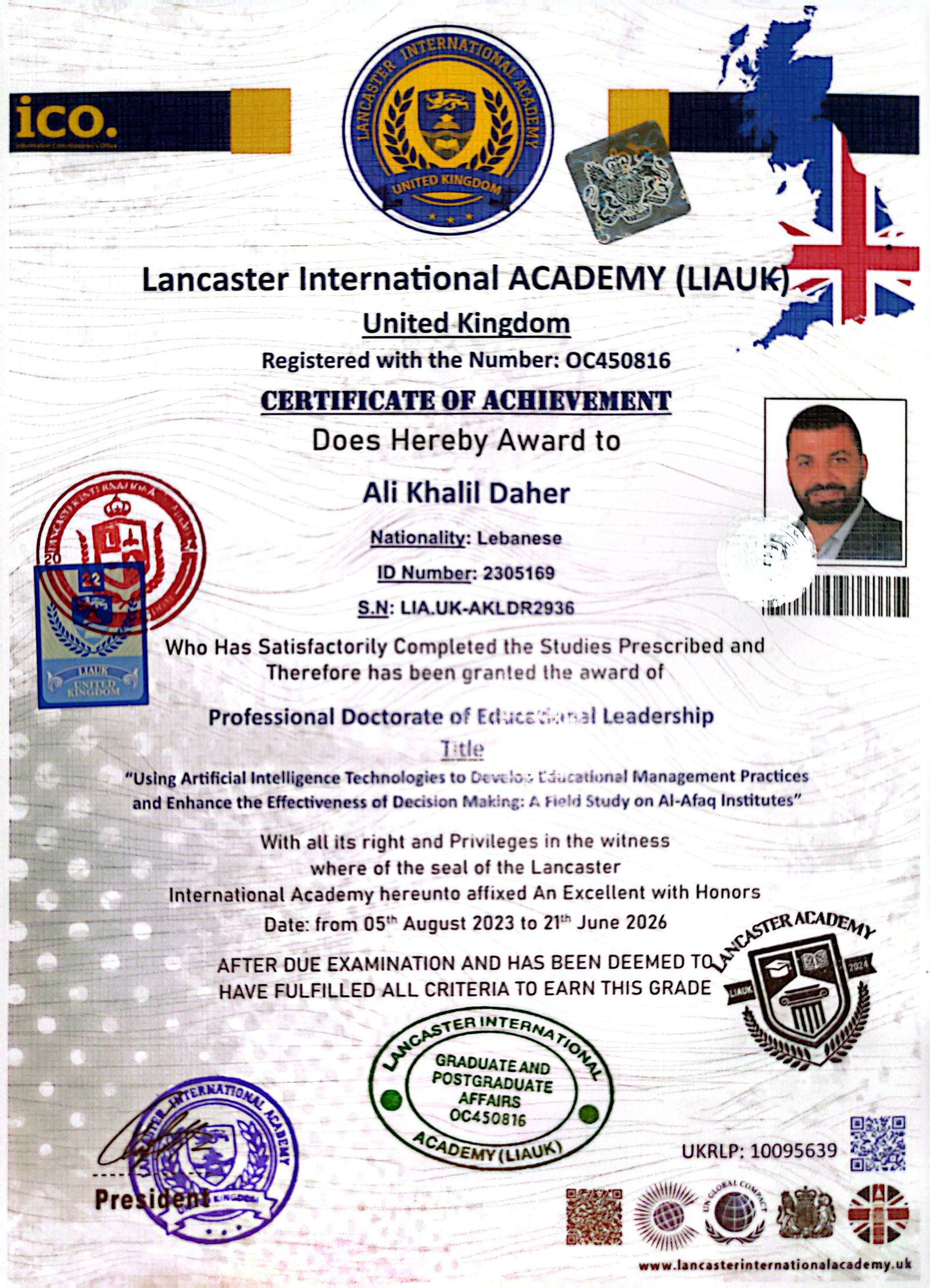 Lancaster International Academy is officially registered and governmental in Britain with registration number 14620579 and is approved by many British and international bodies (British Solicitor – Commonwealth countries – British Foreign Office – Apostille – all embassies of the world) The Academy specializes in providing vocational education at the level of higher education and postgraduate studies. The Academy works to provide and improve virtual education services.