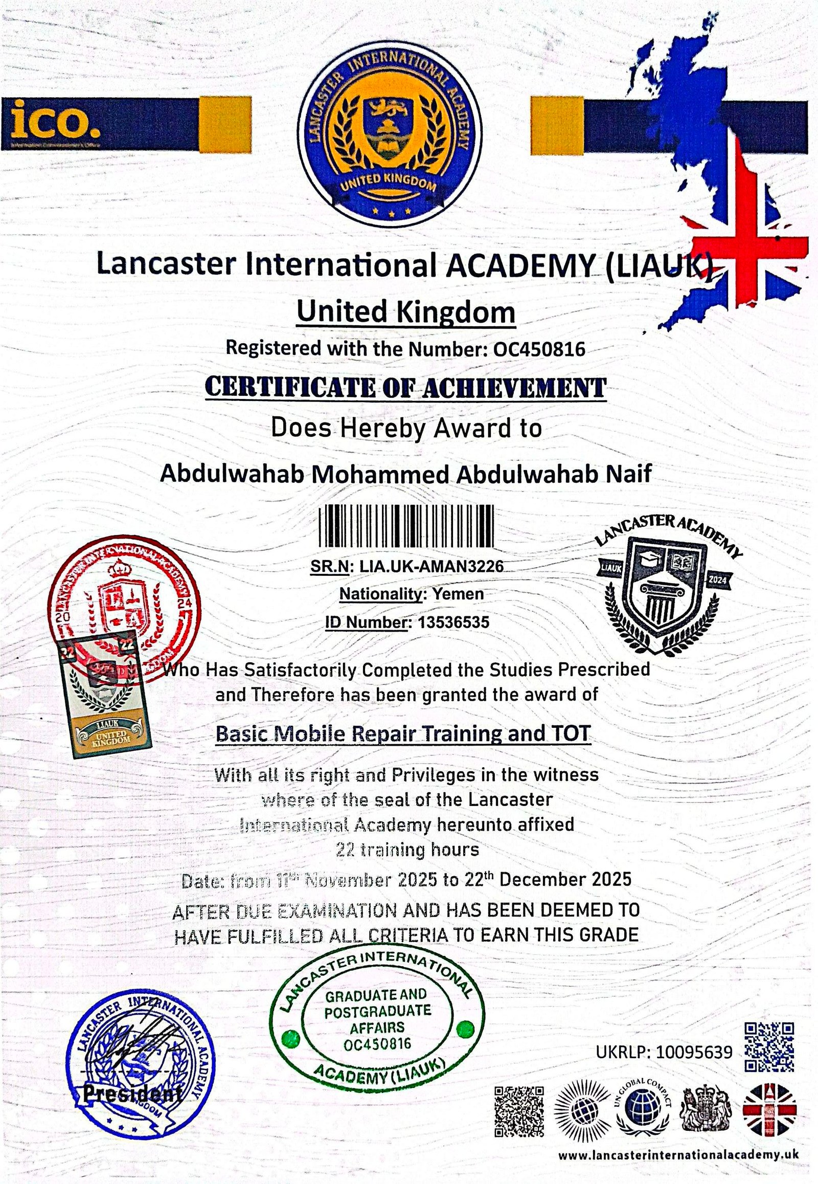 Lancaster International Academy is officially registered and governmental in Britain with registration number 14620579 and is approved by many British and international bodies (British Solicitor – Commonwealth countries – British Foreign Office – Apostille – all embassies of the world) The Academy specializes in providing vocational education at the level of higher education and postgraduate studies. The Academy works to provide and improve virtual education services.