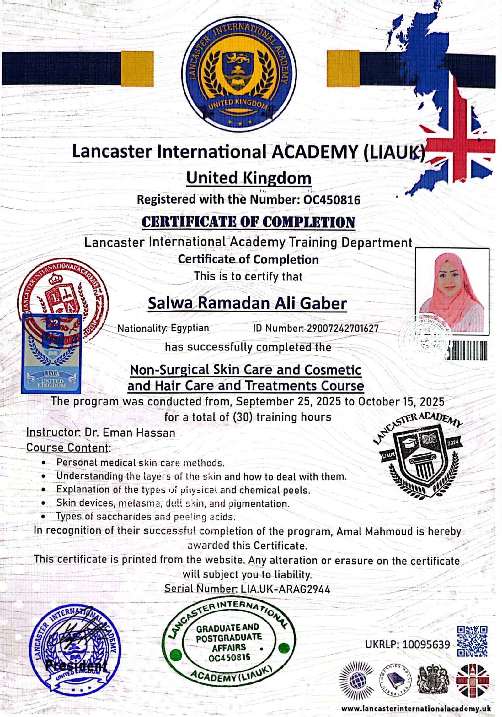 Lancaster International Academy is officially registered and governmental in Britain with registration number 14620579 and is approved by many British and international bodies (British Solicitor – Commonwealth countries – British Foreign Office – Apostille – all embassies of the world) The Academy specializes in providing vocational education at the level of higher education and postgraduate studies. The Academy works to provide and improve virtual education services.