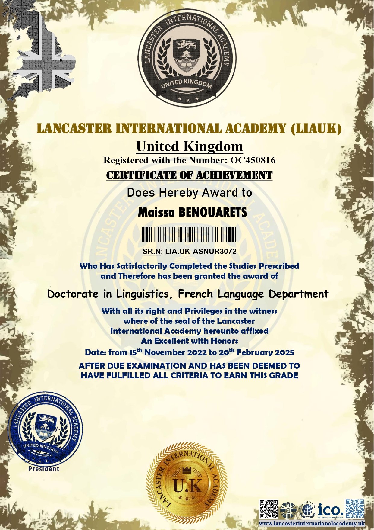 Lancaster International Academy is officially registered and governmental in Britain with registration number 14620579 and is approved by many British and international bodies (British Solicitor – Commonwealth countries – British Foreign Office – Apostille – all embassies of the world) The Academy specializes in providing vocational education at the level of higher education and postgraduate studies. The Academy works to provide and improve virtual education services.