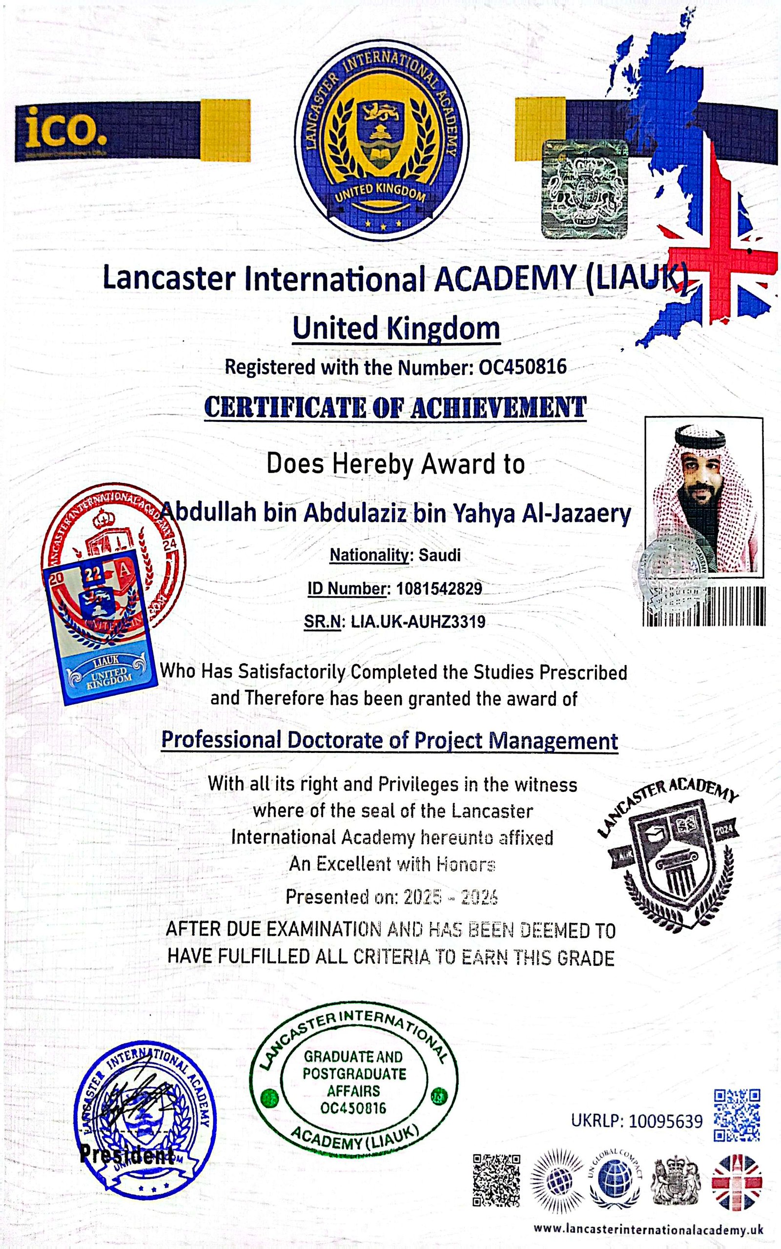 Lancaster International Academy is officially registered and governmental in Britain with registration number 14620579 and is approved by many British and international bodies (British Solicitor – Commonwealth countries – British Foreign Office – Apostille – all embassies of the world) The Academy specializes in providing vocational education at the level of higher education and postgraduate studies. The Academy works to provide and improve virtual education services.