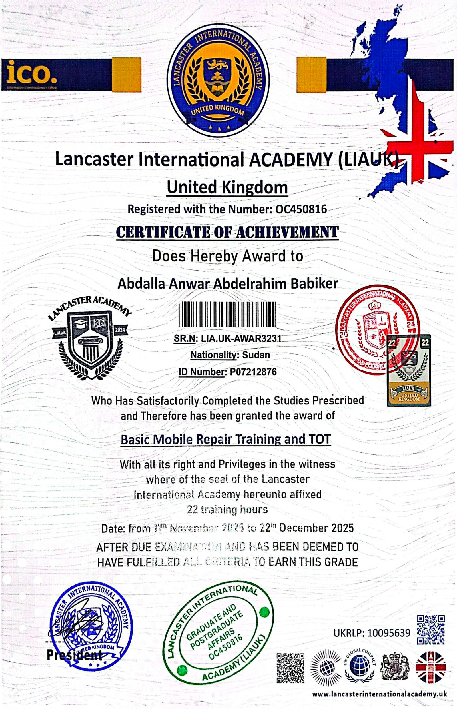 Lancaster International Academy is officially registered and governmental in Britain with registration number 14620579 and is approved by many British and international bodies (British Solicitor – Commonwealth countries – British Foreign Office – Apostille – all embassies of the world) The Academy specializes in providing vocational education at the level of higher education and postgraduate studies. The Academy works to provide and improve virtual education services.