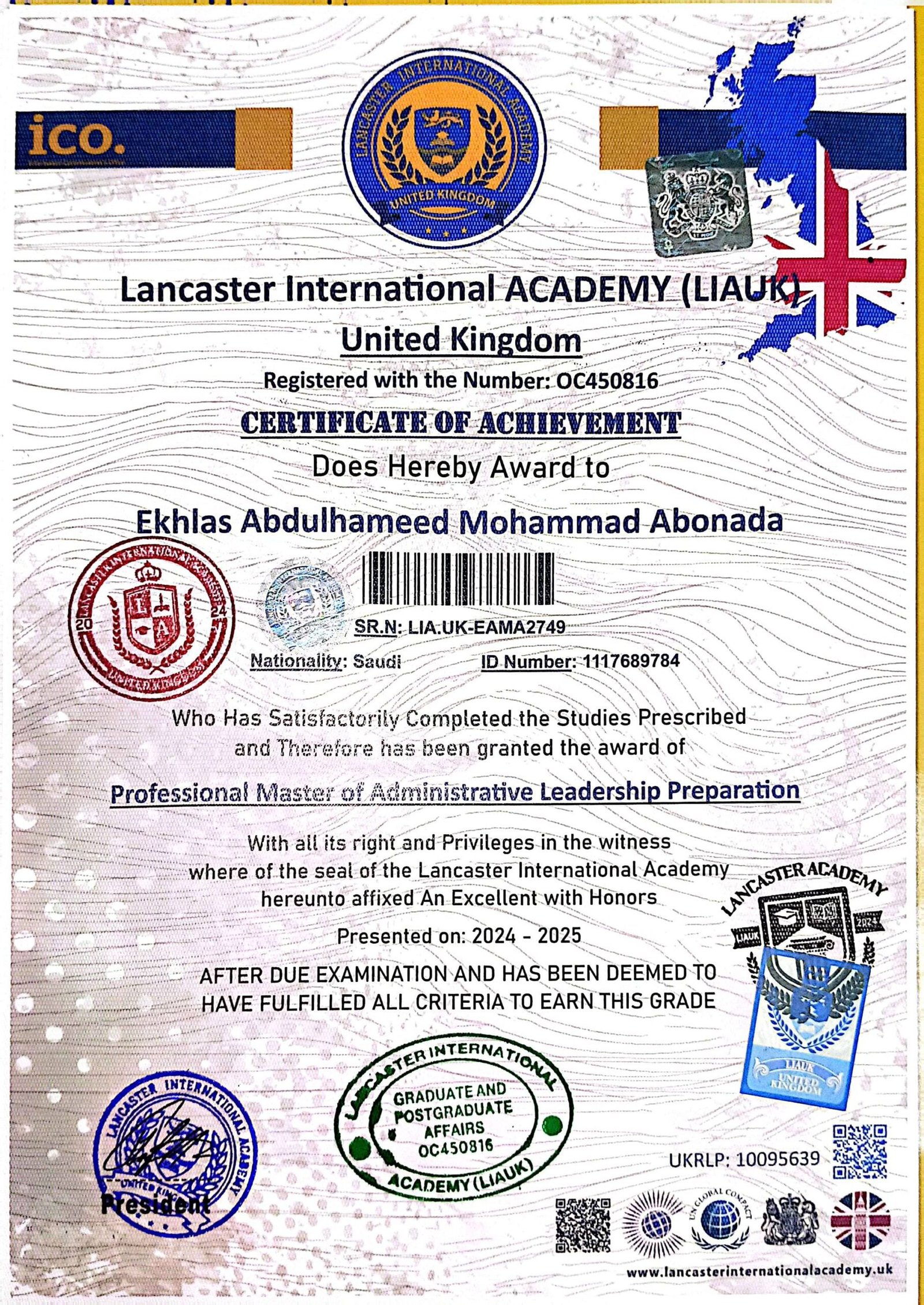 Lancaster International Academy is officially registered and governmental in Britain with registration number 14620579 and is approved by many British and international bodies (British Solicitor – Commonwealth countries – British Foreign Office – Apostille – all embassies of the world) The Academy specializes in providing vocational education at the level of higher education and postgraduate studies. The Academy works to provide and improve virtual education services.