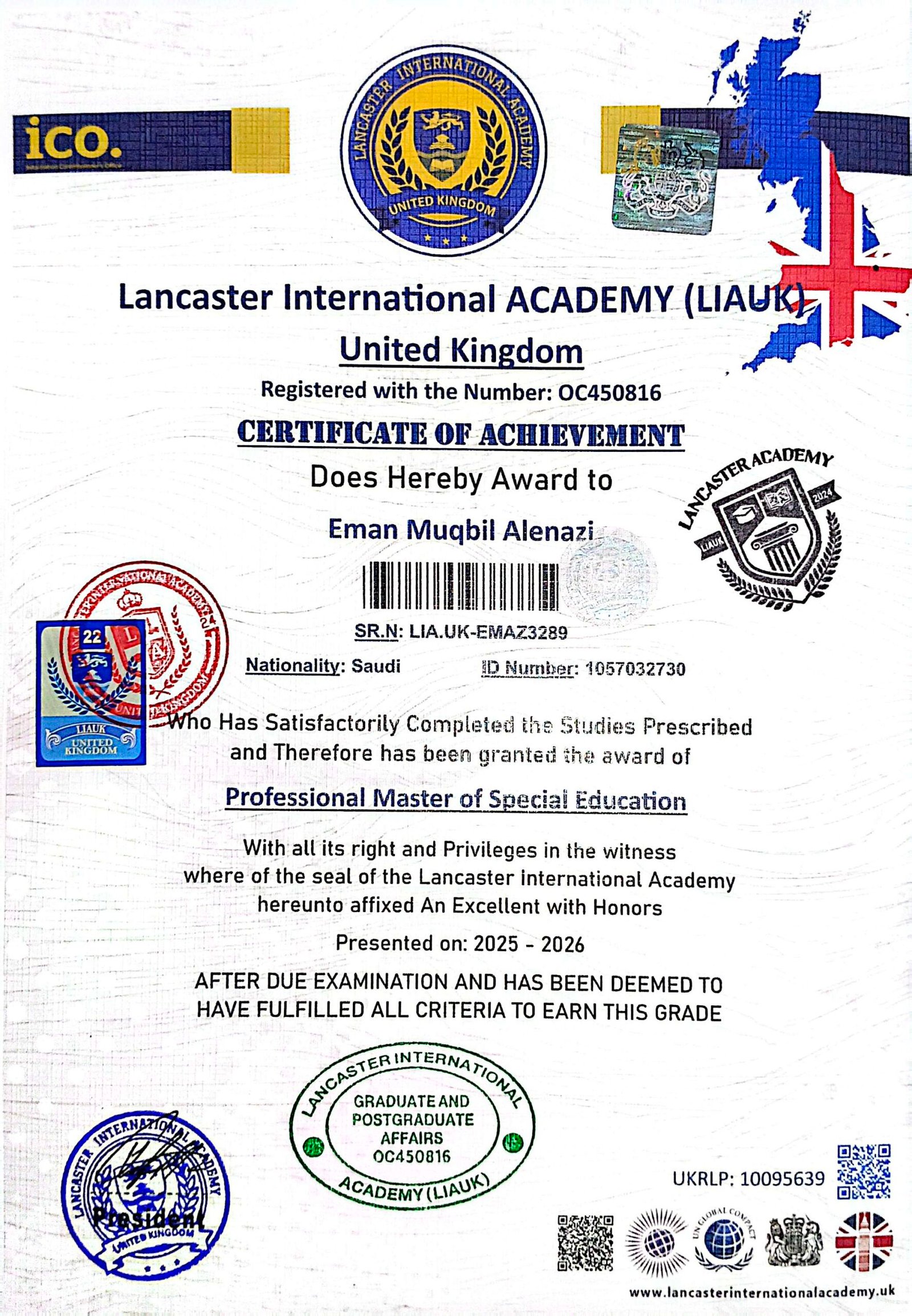 Lancaster International Academy is officially registered and governmental in Britain with registration number 14620579 and is approved by many British and international bodies (British Solicitor – Commonwealth countries – British Foreign Office – Apostille – all embassies of the world) The Academy specializes in providing vocational education at the level of higher education and postgraduate studies. The Academy works to provide and improve virtual education services.