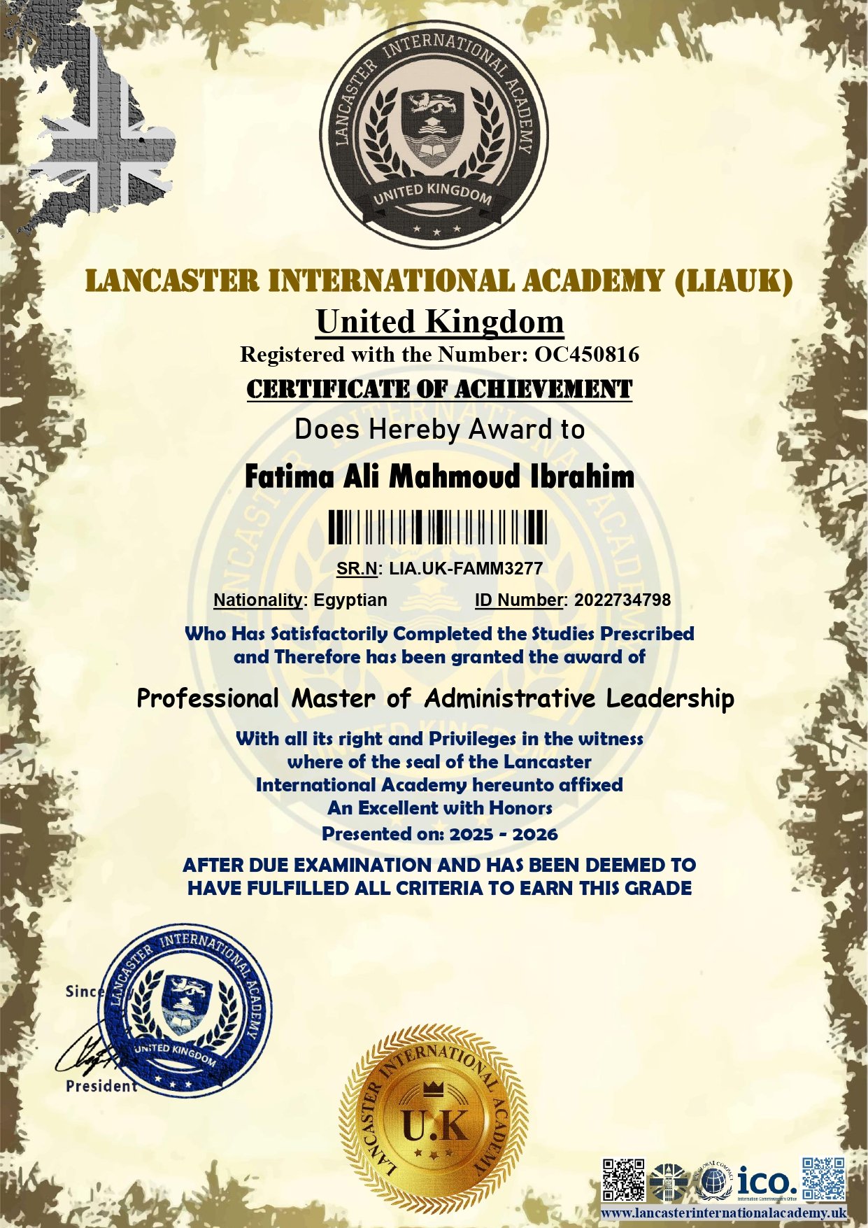 Lancaster International Academy is officially registered and governmental in Britain with registration number 14620579 and is approved by many British and international bodies (British Solicitor – Commonwealth countries – British Foreign Office – Apostille – all embassies of the world) The Academy specializes in providing vocational education at the level of higher education and postgraduate studies. The Academy works to provide and improve virtual education services.