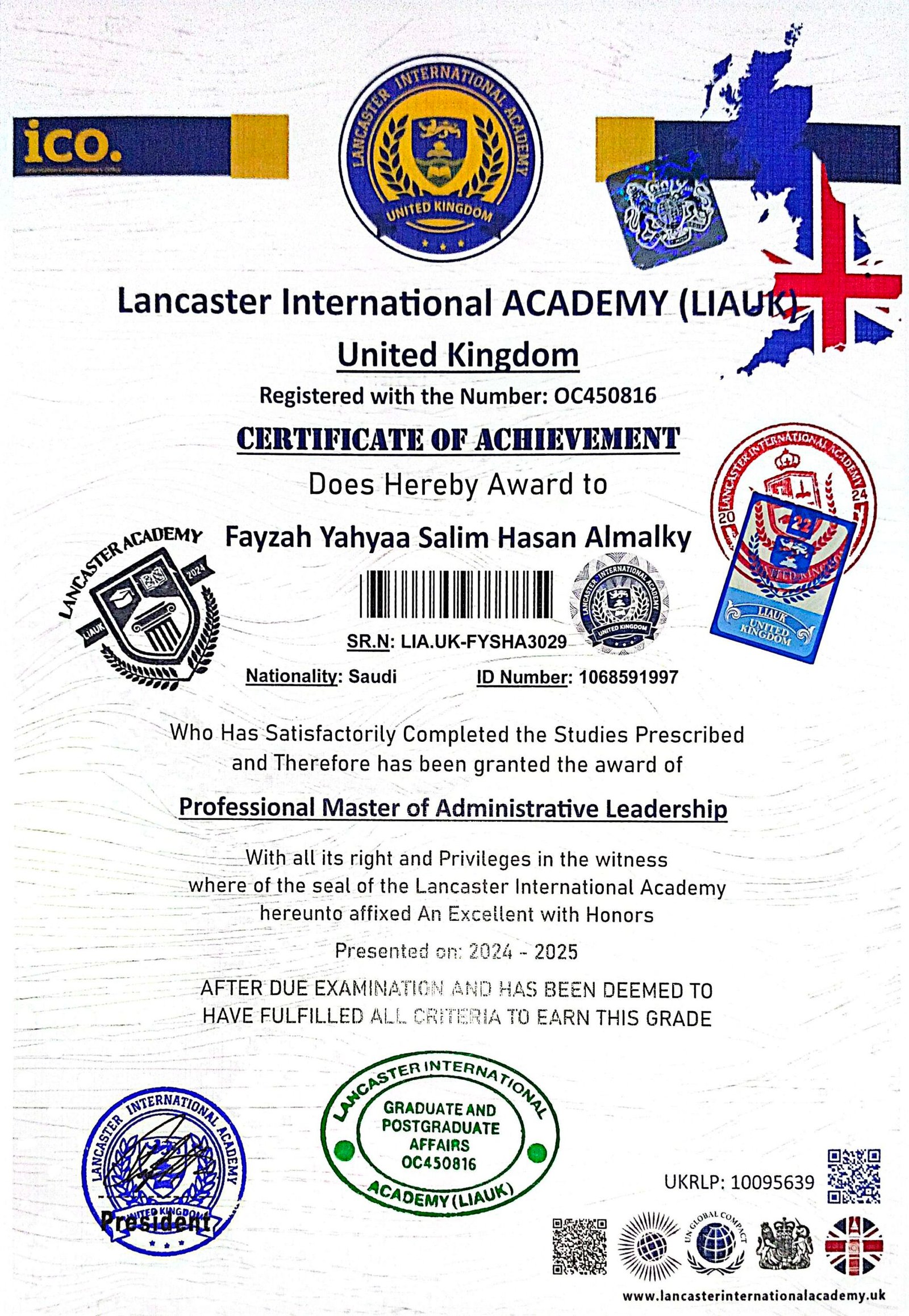 Lancaster International Academy is officially registered and governmental in Britain with registration number 14620579 and is approved by many British and international bodies (British Solicitor – Commonwealth countries – British Foreign Office – Apostille – all embassies of the world) The Academy specializes in providing vocational education at the level of higher education and postgraduate studies. The Academy works to provide and improve virtual education services.