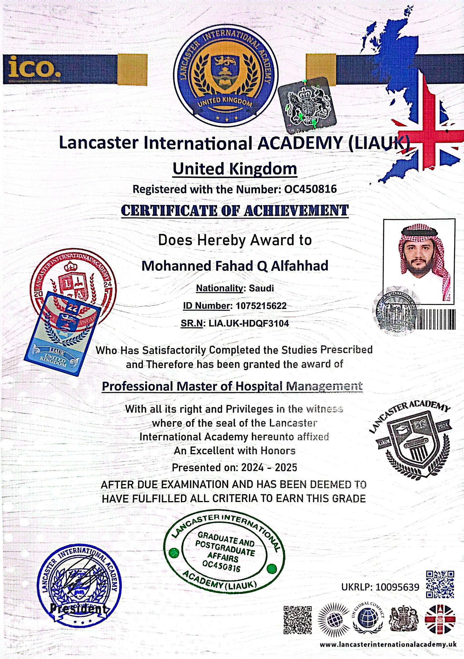 Lancaster International Academy is officially registered and governmental in Britain with registration number 14620579 and is approved by many British and international bodies (British Solicitor – Commonwealth countries – British Foreign Office – Apostille – all embassies of the world) The Academy specializes in providing vocational education at the level of higher education and postgraduate studies. The Academy works to provide and improve virtual education services.