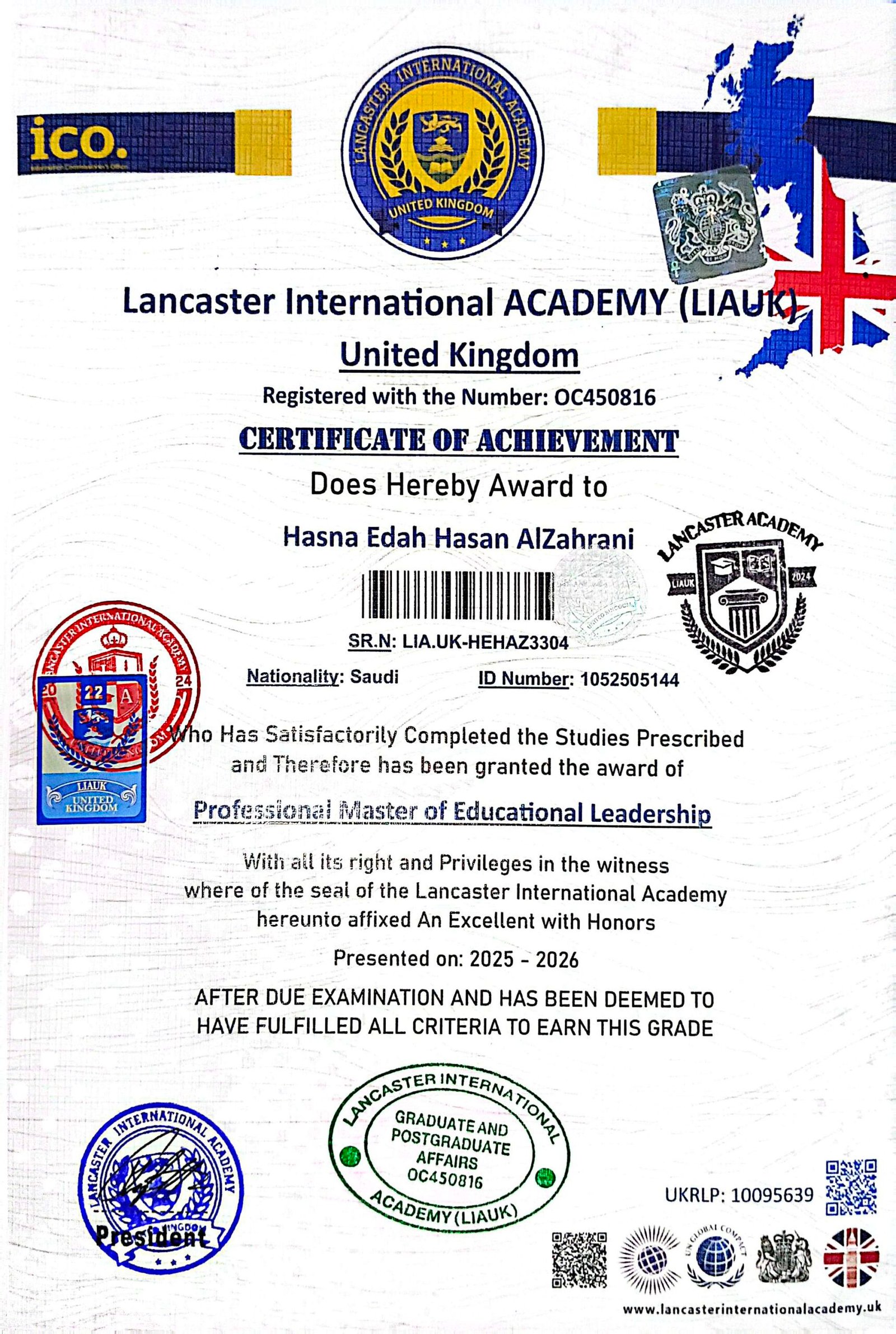 Lancaster International Academy is officially registered and governmental in Britain with registration number 14620579 and is approved by many British and international bodies (British Solicitor – Commonwealth countries – British Foreign Office – Apostille – all embassies of the world) The Academy specializes in providing vocational education at the level of higher education and postgraduate studies. The Academy works to provide and improve virtual education services.