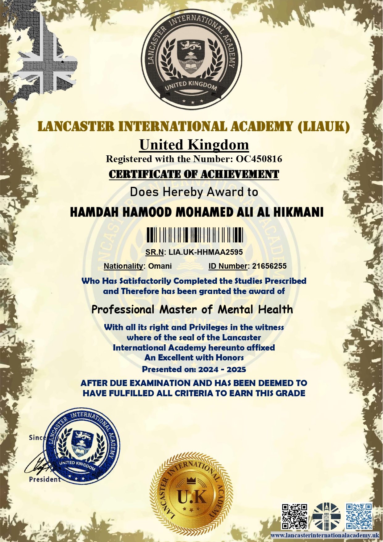 Lancaster International Academy is officially registered and governmental in Britain with registration number 14620579 and is approved by many British and international bodies (British Solicitor – Commonwealth countries – British Foreign Office – Apostille – all embassies of the world) The Academy specializes in providing vocational education at the level of higher education and postgraduate studies. The Academy works to provide and improve virtual education services.