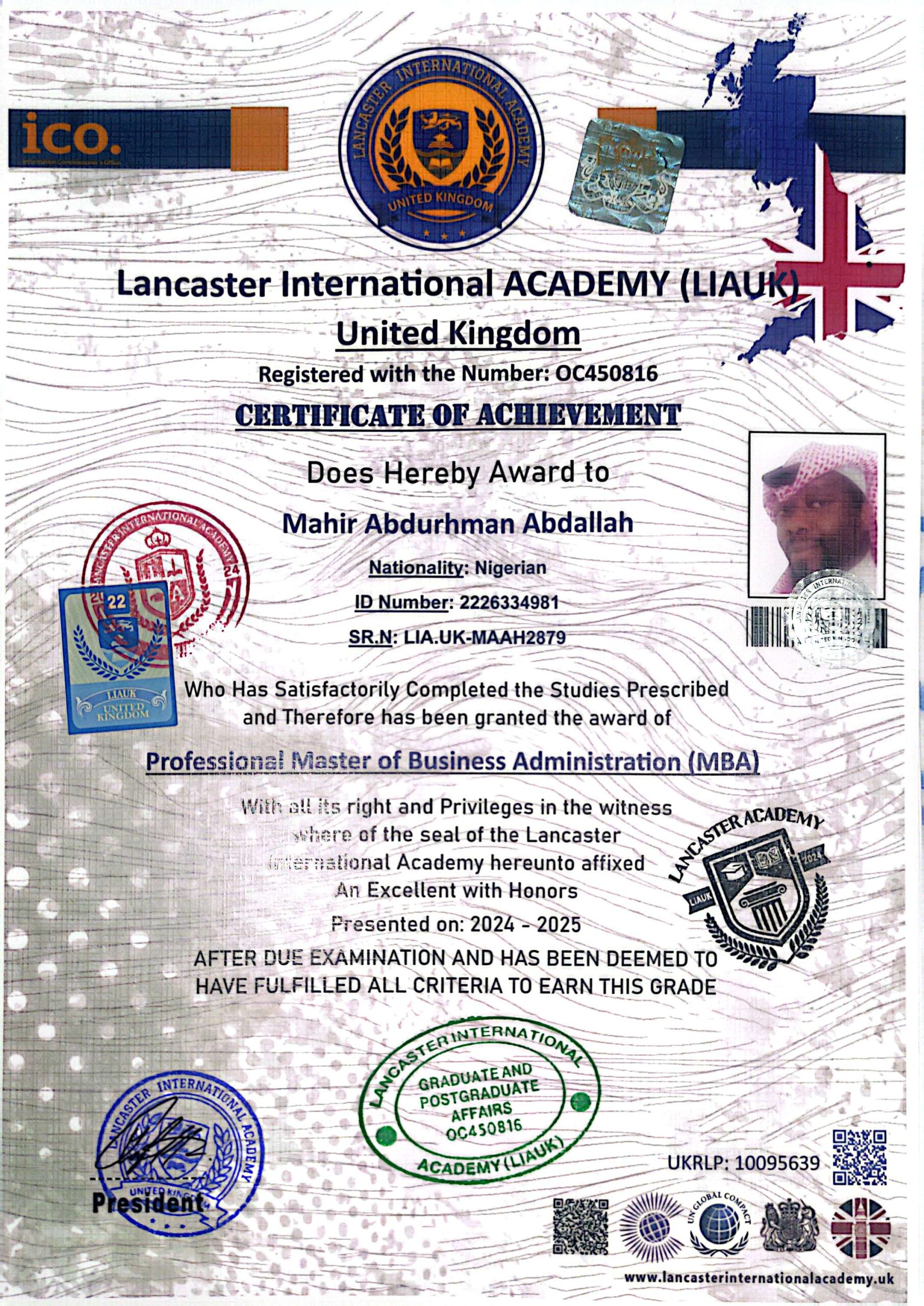 Lancaster International Academy is officially registered and governmental in Britain with registration number 14620579 and is approved by many British and international bodies (British Solicitor – Commonwealth countries – British Foreign Office – Apostille – all embassies of the world) The Academy specializes in providing vocational education at the level of higher education and postgraduate studies. The Academy works to provide and improve virtual education services.