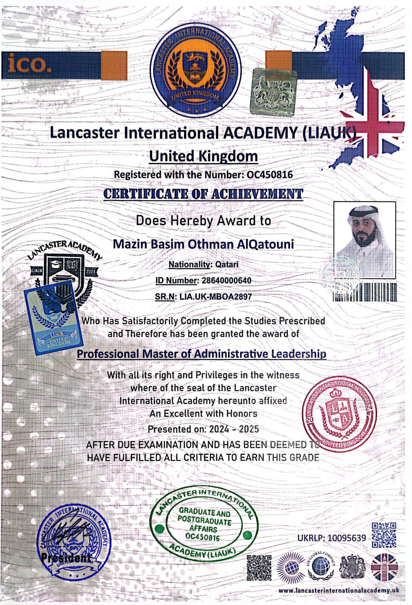 Lancaster International Academy is officially registered and governmental in Britain with registration number 14620579 and is approved by many British and international bodies (British Solicitor – Commonwealth countries – British Foreign Office – Apostille – all embassies of the world) The Academy specializes in providing vocational education at the level of higher education and postgraduate studies. The Academy works to provide and improve virtual education services.