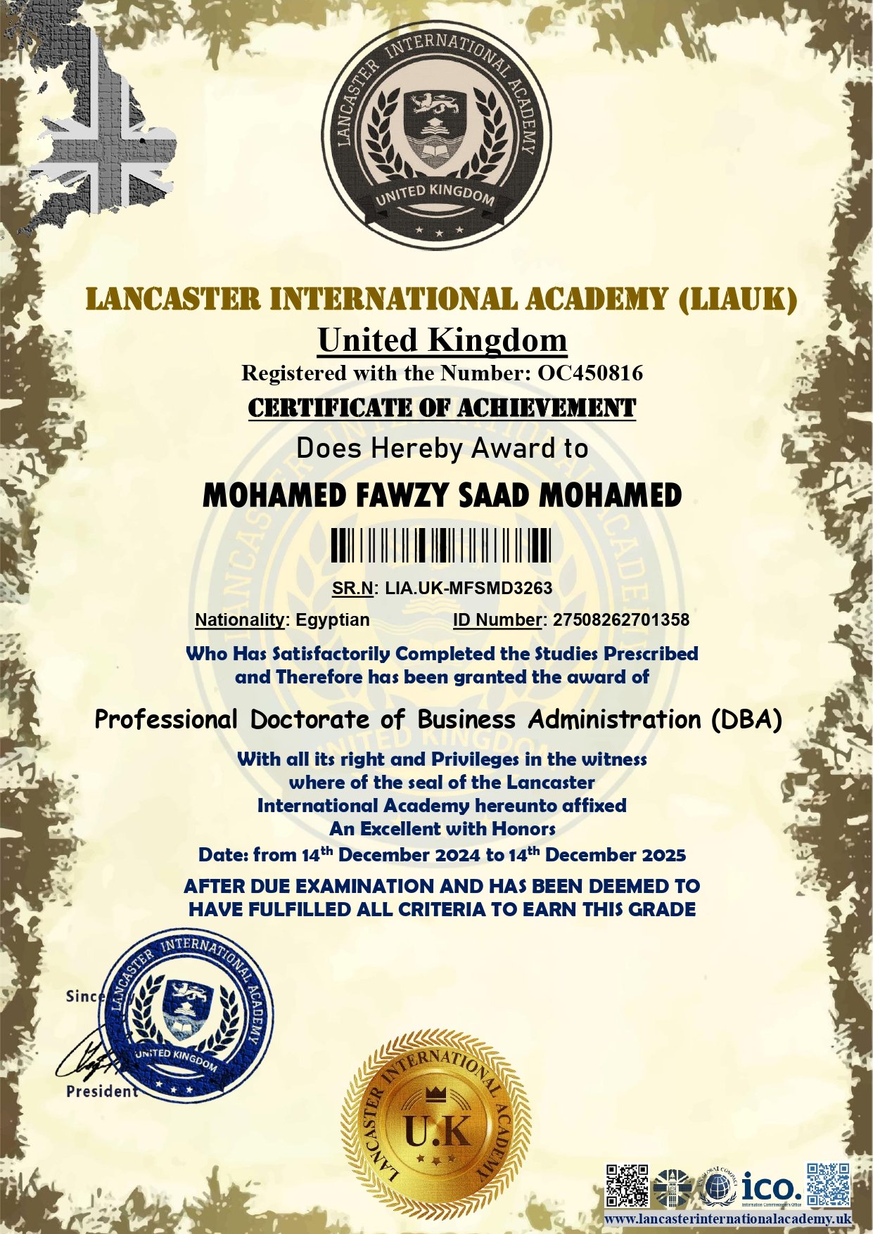Lancaster International Academy is officially registered and governmental in Britain with registration number 14620579 and is approved by many British and international bodies (British Solicitor – Commonwealth countries – British Foreign Office – Apostille – all embassies of the world) The Academy specializes in providing vocational education at the level of higher education and postgraduate studies. The Academy works to provide and improve virtual education services.