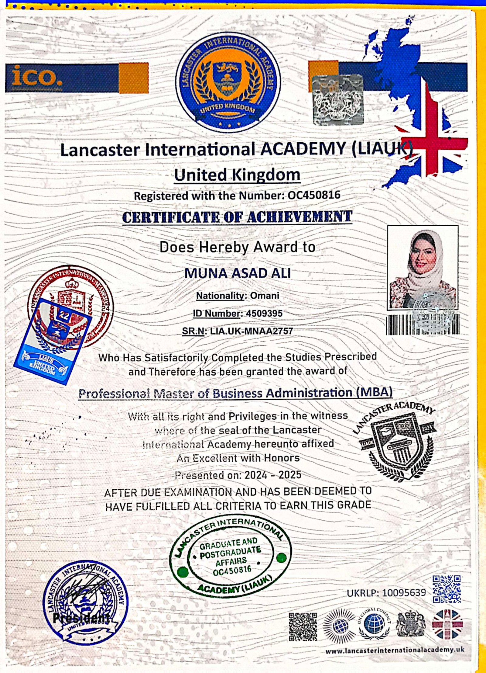 Lancaster International Academy is officially registered and governmental in Britain with registration number 14620579 and is approved by many British and international bodies (British Solicitor – Commonwealth countries – British Foreign Office – Apostille – all embassies of the world) The Academy specializes in providing vocational education at the level of higher education and postgraduate studies. The Academy works to provide and improve virtual education services.