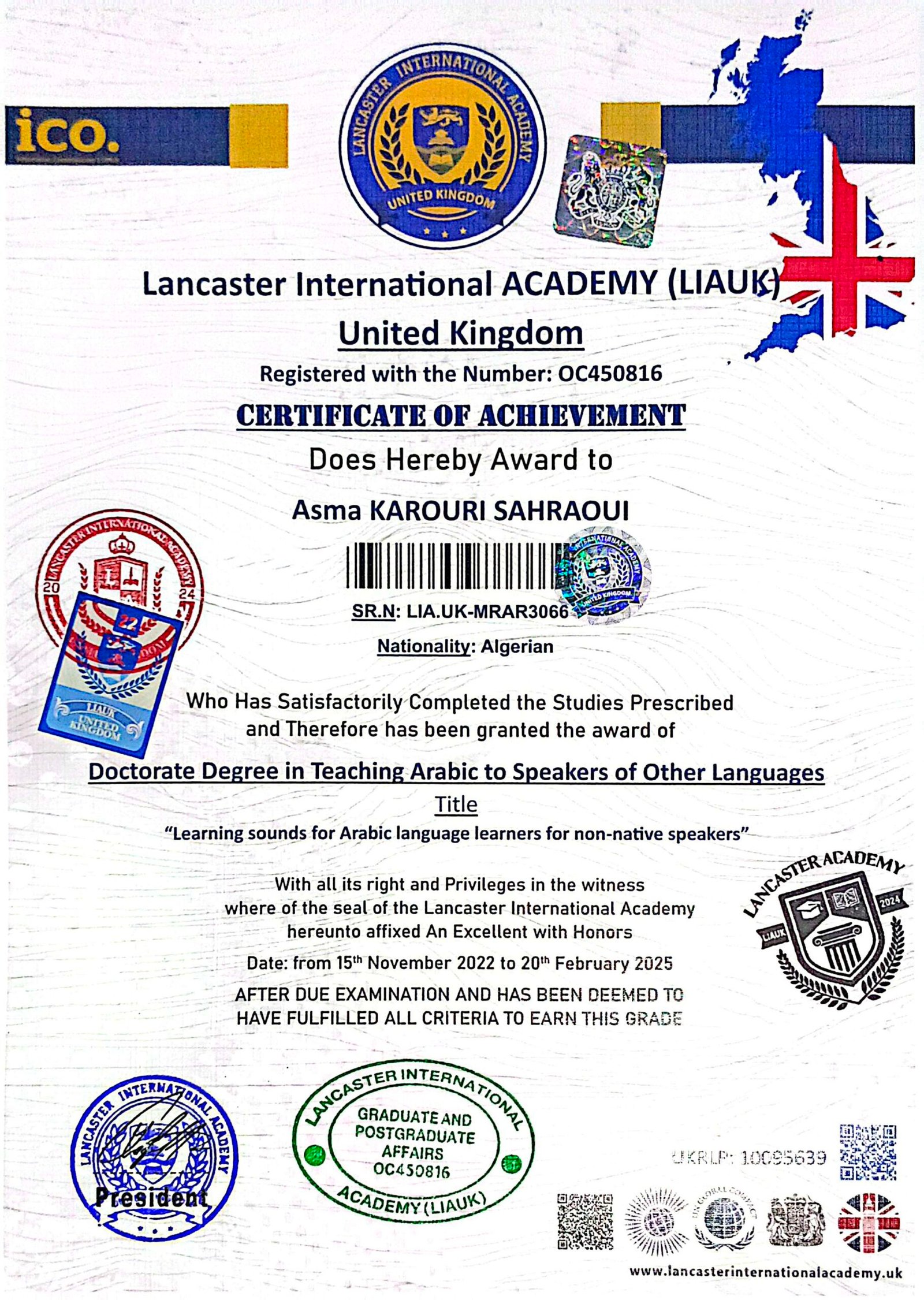 Lancaster International Academy is officially registered and governmental in Britain with registration number 14620579 and is approved by many British and international bodies (British Solicitor – Commonwealth countries – British Foreign Office – Apostille – all embassies of the world) The Academy specializes in providing vocational education at the level of higher education and postgraduate studies. The Academy works to provide and improve virtual education services.