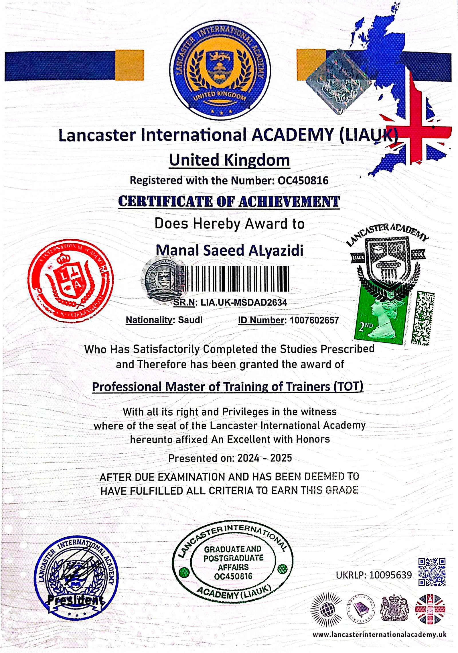 Lancaster International Academy is officially registered and governmental in Britain with registration number 14620579 and is approved by many British and international bodies (British Solicitor – Commonwealth countries – British Foreign Office – Apostille – all embassies of the world) The Academy specializes in providing vocational education at the level of higher education and postgraduate studies. The Academy works to provide and improve virtual education services.