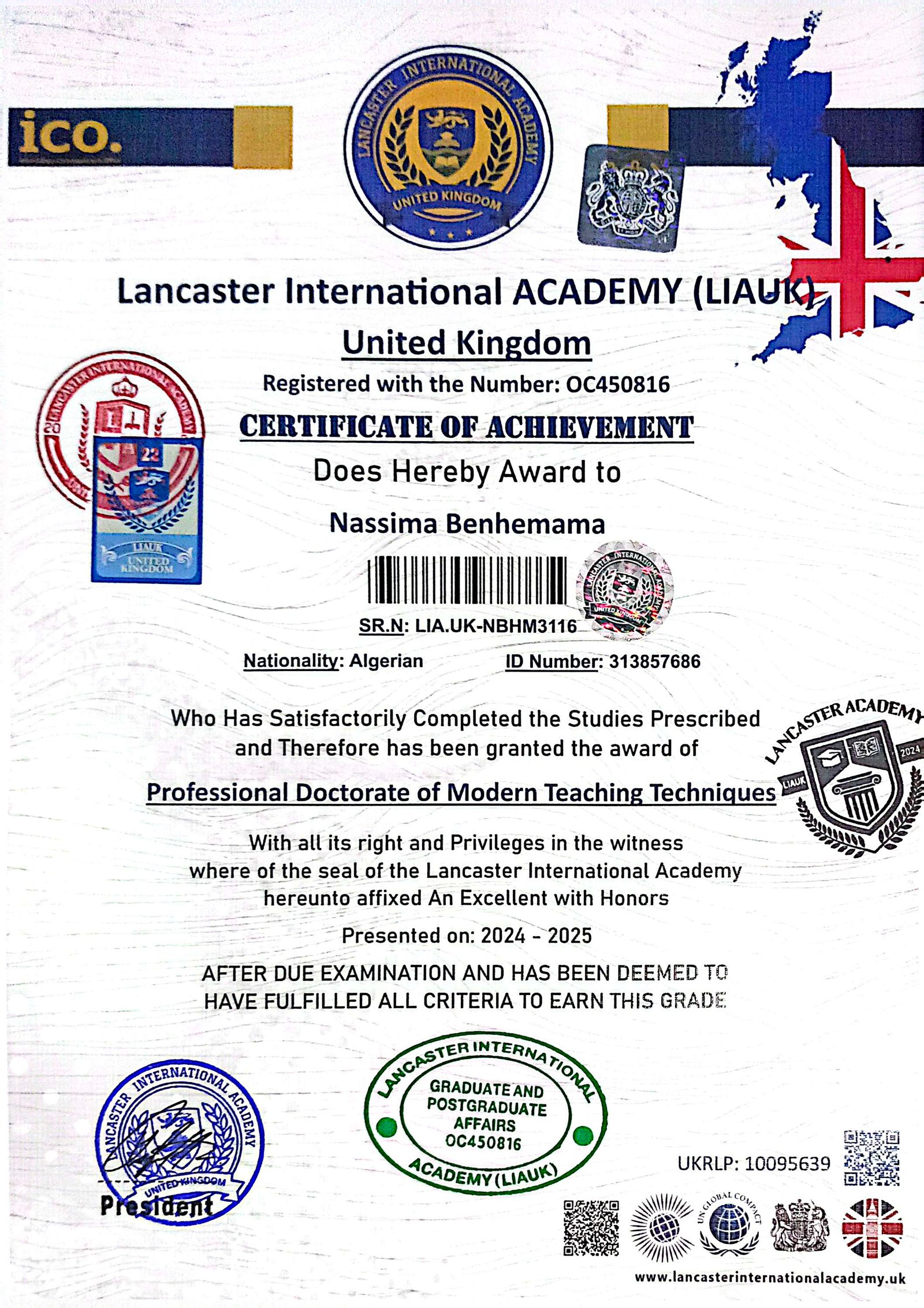 Lancaster International Academy is officially registered and governmental in Britain with registration number 14620579 and is approved by many British and international bodies (British Solicitor – Commonwealth countries – British Foreign Office – Apostille – all embassies of the world) The Academy specializes in providing vocational education at the level of higher education and postgraduate studies. The Academy works to provide and improve virtual education services.