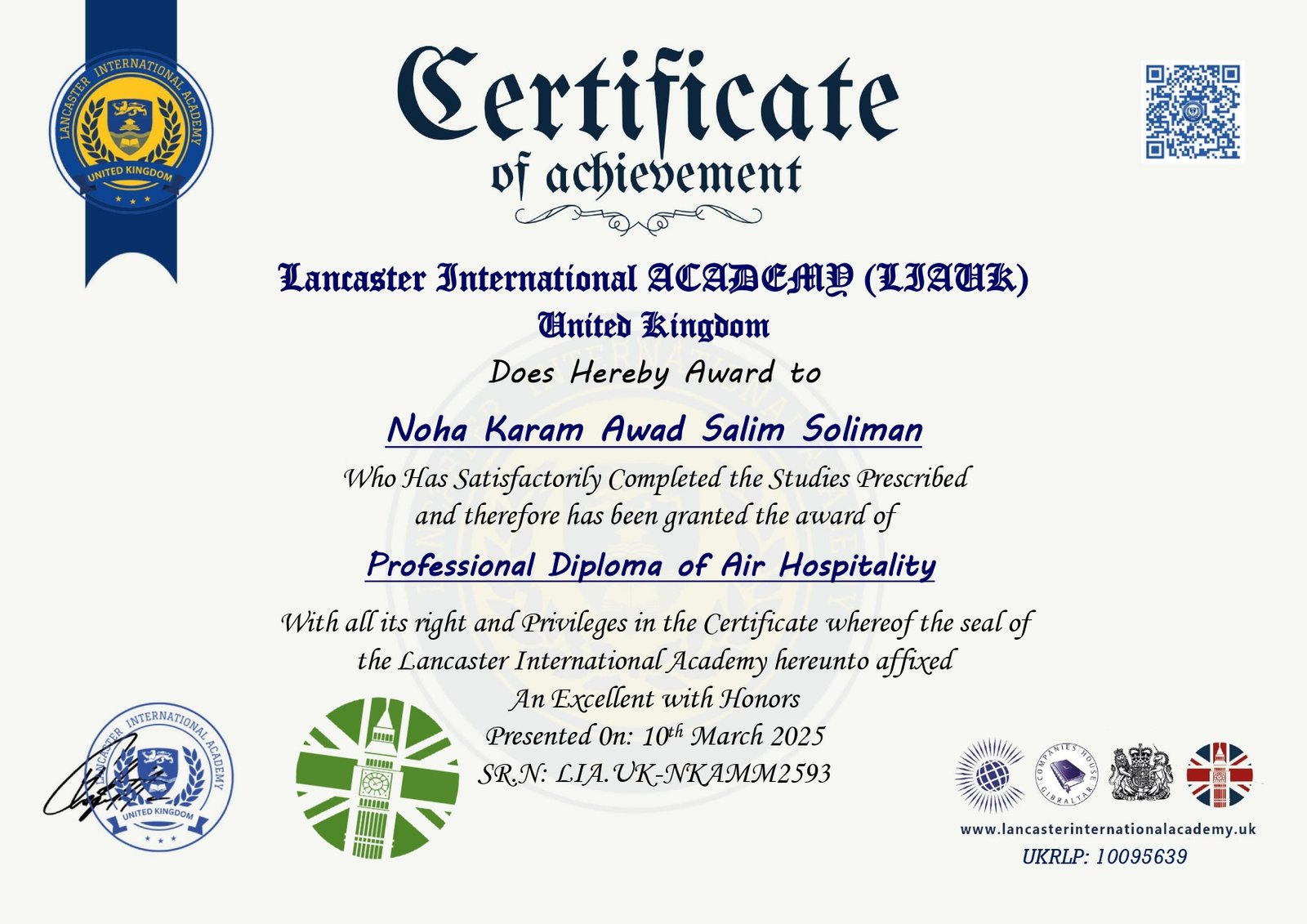 Lancaster International Academy is officially registered and governmental in Britain with registration number 14620579 and is approved by many British and international bodies (British Solicitor – Commonwealth countries – British Foreign Office – Apostille – all embassies of the world) The Academy specializes in providing vocational education at the level of higher education and postgraduate studies. The Academy works to provide and improve virtual education services.