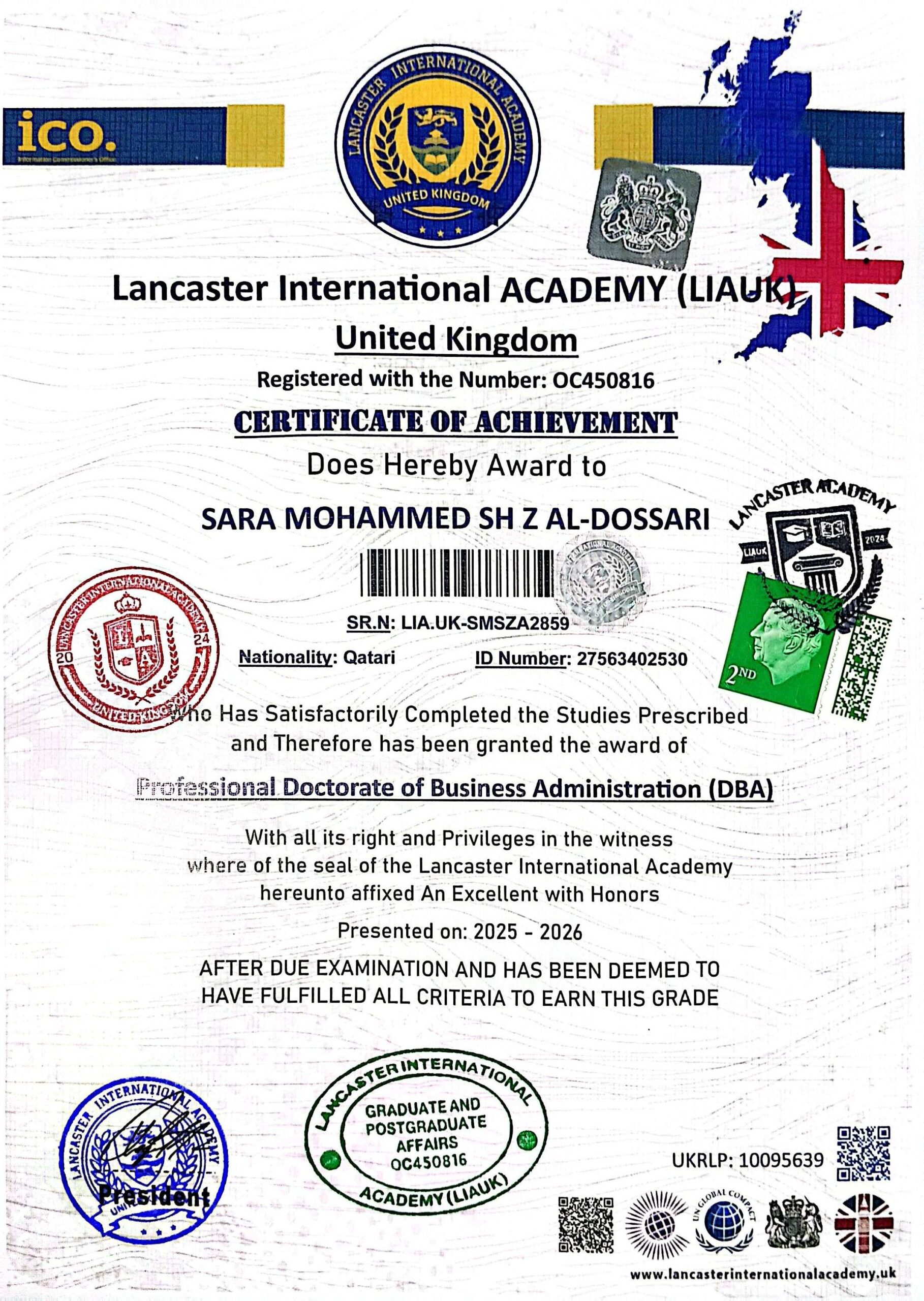 Lancaster International Academy is officially registered and governmental in Britain with registration number 14620579 and is approved by many British and international bodies (British Solicitor – Commonwealth countries – British Foreign Office – Apostille – all embassies of the world) The Academy specializes in providing vocational education at the level of higher education and postgraduate studies. The Academy works to provide and improve virtual education services.