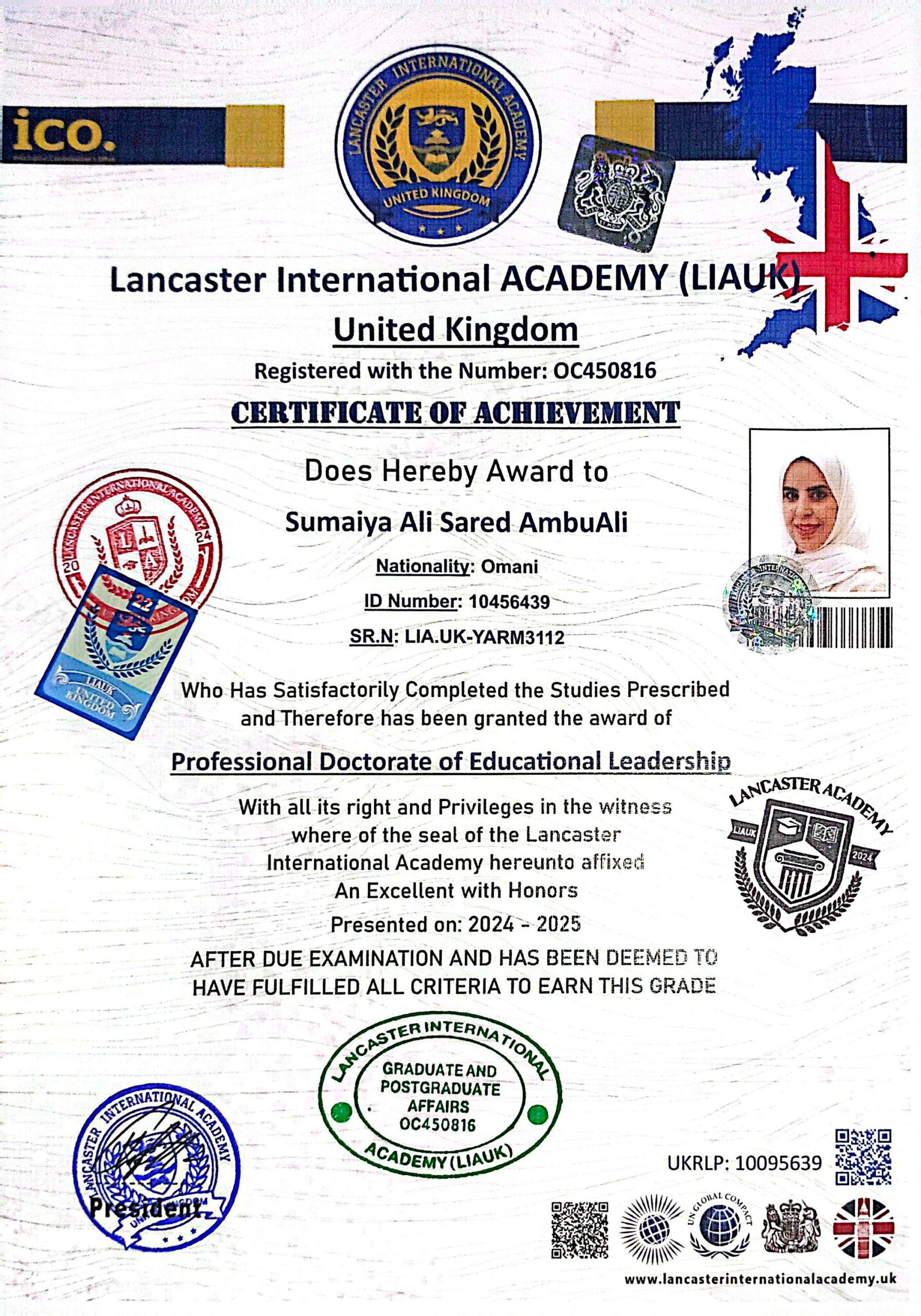 Lancaster International Academy is officially registered and governmental in Britain with registration number 14620579 and is approved by many British and international bodies (British Solicitor – Commonwealth countries – British Foreign Office – Apostille – all embassies of the world) The Academy specializes in providing vocational education at the level of higher education and postgraduate studies. The Academy works to provide and improve virtual education services.