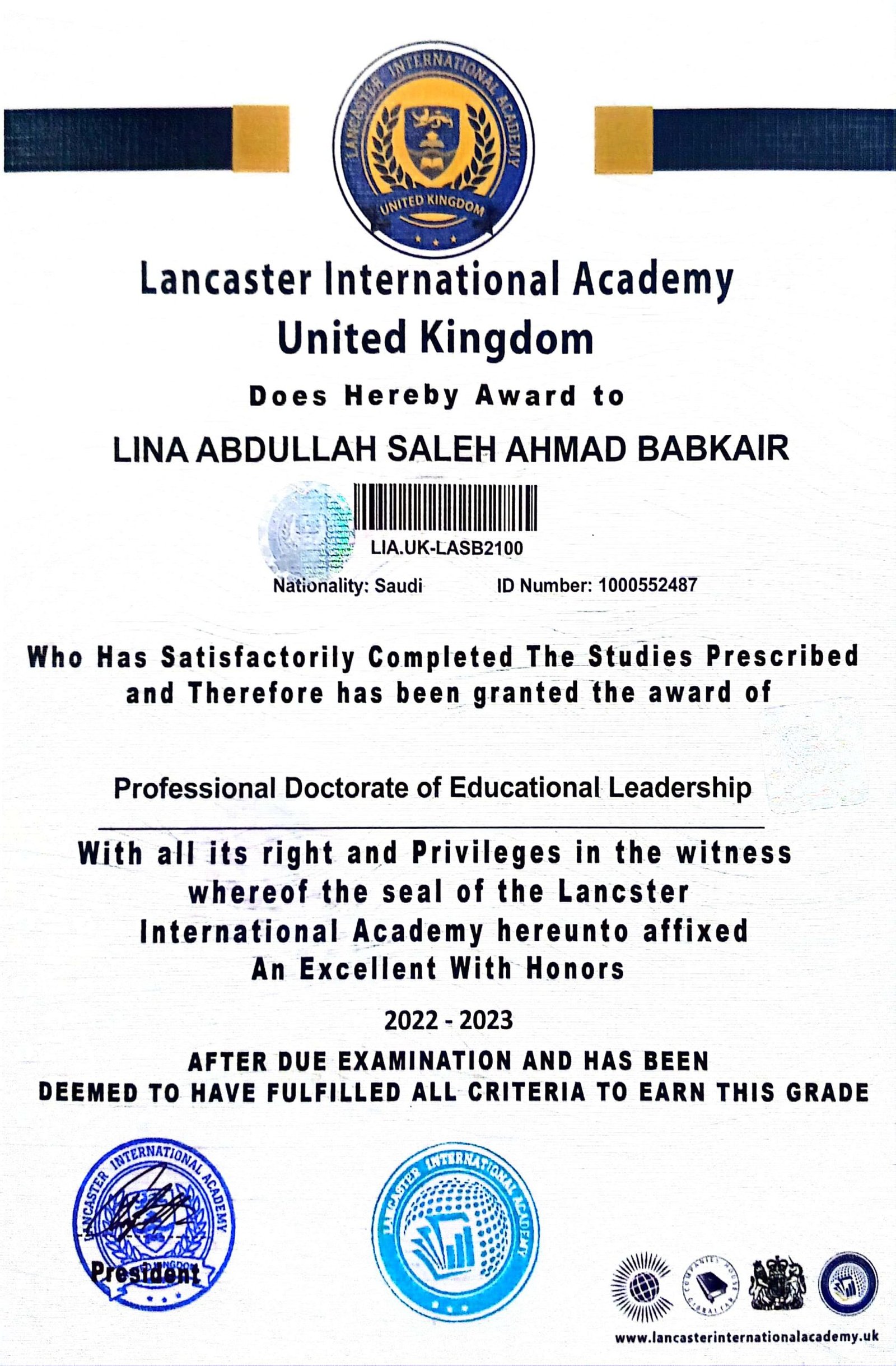 LINA ABDULLAH SALEH AHMAD BABKAIR – LIA.UK-LASB2100