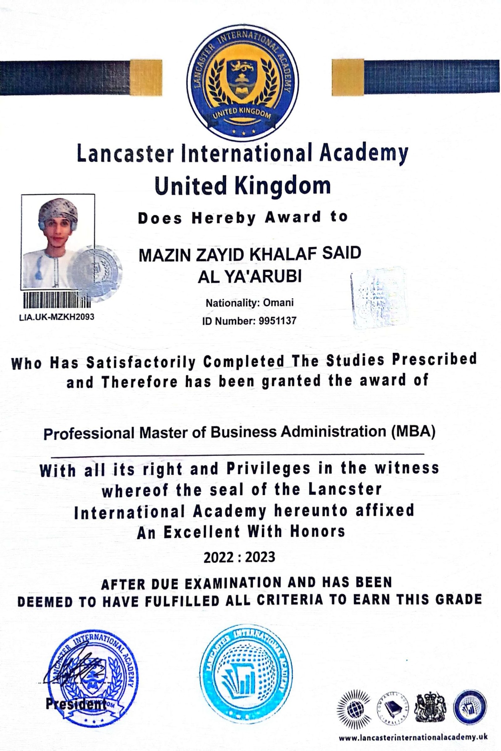MAZIN ZAYID KHALAF SAID AL YA’ARUBI – LIA.UK-MZKH2093