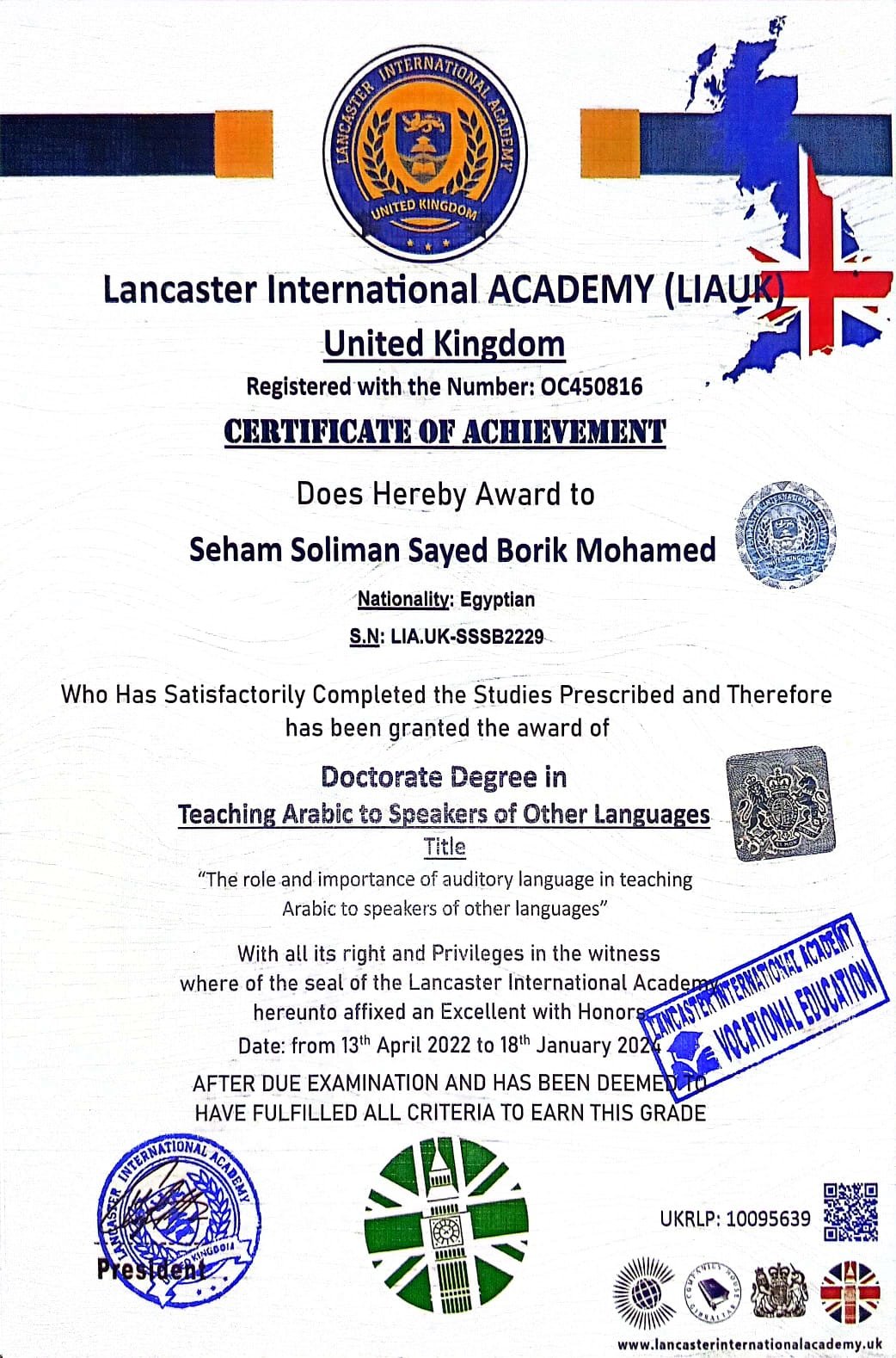 Lancaster International Academy is officially registered and governmental in Britain with registration number 14620579 and is approved by many British and international bodies (British Solicitor – Commonwealth countries – British Foreign Office – Apostille – all embassies of the world) The Academy specializes in providing vocational education at the level of higher education and postgraduate studies. The Academy works to provide and improve virtual education services.